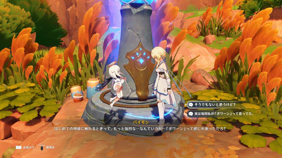 ナタ実装前から話題になっていたポワーンは、どうやら魔神任務で訪れる前に自主的に七天神像に触れないと発生しないイベントらしい。私が魔神任務を完全に無視してワープポイントを開ける旅に出たことが良くわかる画像だ。